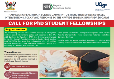 Program overview The Harnessing Health Data Science capacity to strengthen evidence-based interventions, policy and response to the HIV/AIDS Epidemic in Uganda (H-DATA) is a training grant funded by the NIH through Fogarty International Center (Grant Number D43TW013056). This grant is a collaborative effort of multiple principal investigators from Makerere University, Uganda and University of California, […]