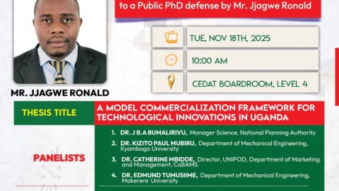 Date Range 18 November, 2025 Event Category Hybrid (Physical & Virtual) Event Venue CEDAT Board Room Link to Event https://events.mak.ac.ug/events/2025/11/18/612 Image /sites/default/files/styles/larger/public/2025-11/Ronald.jpeg?itok=ENgadrH1